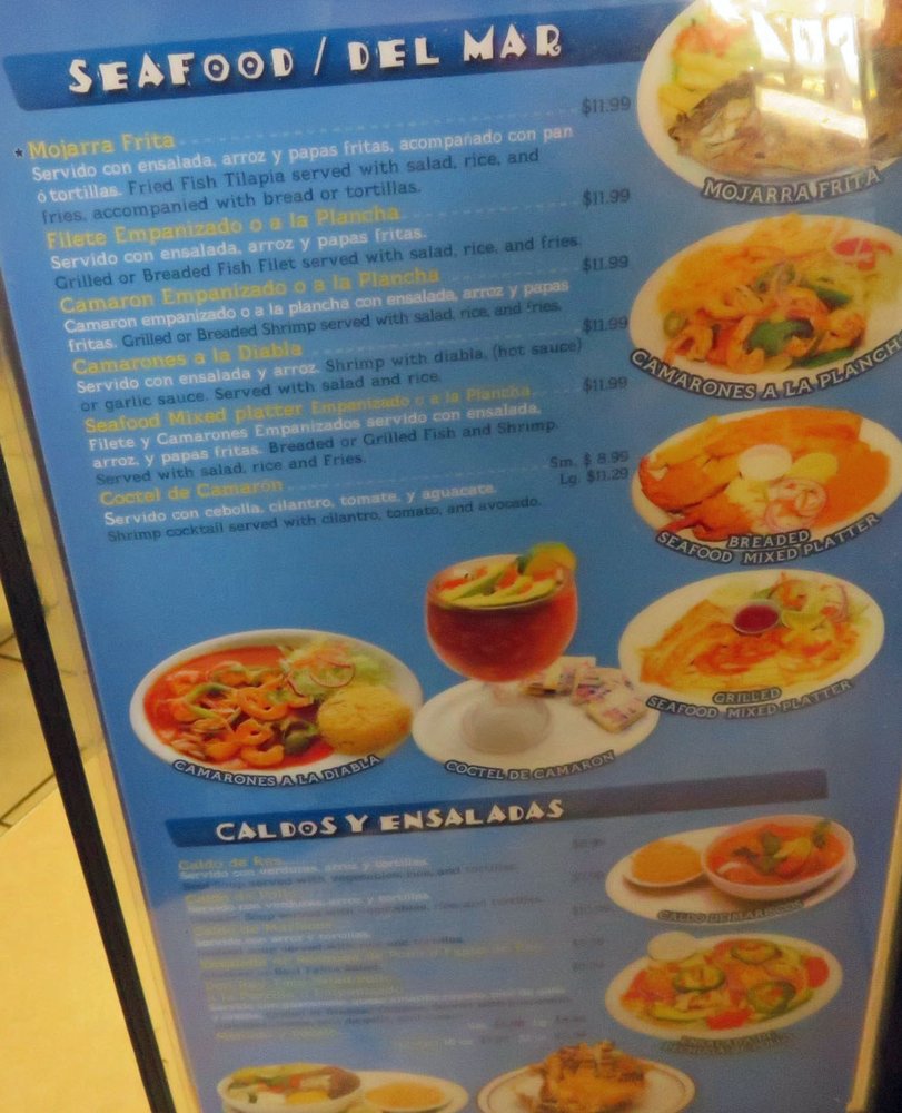 Servido con arroz y tortillas. Nuestro pescado y pollo pueden contener pequeños huesos. Seafood soup served with rice and tortillas. Our fish and chicken may contain small bones